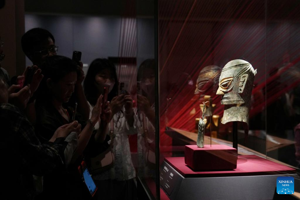 Visitors view an exhibit at the exhibition "This is the Shang" at the Grand Canal Museum of Beijing in Beijing, capital of China, June 2, 2025. People enjoy the 3-day holiday of the Dragon Boat Festival, also called Duanwu Festival which falls on May 31 this year, via various activities across the country. (Xinhua/Ju Huanzong)