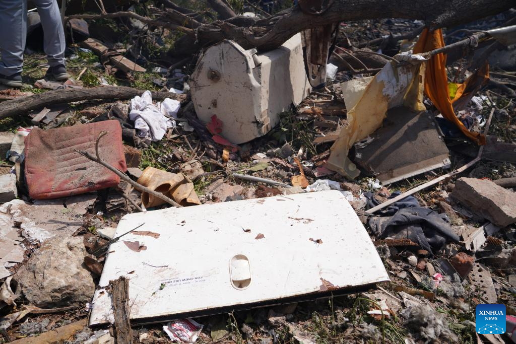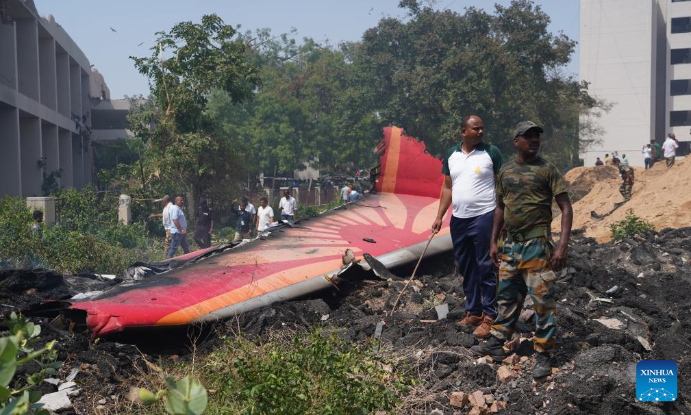 Debris of an Air India plane is seen at the crash site in Ahmedabad of India's Gujarat state, June 12, 2025. India's foreign ministry said a lot of people have lost their lives in the plane crash with 242 people on board the flight to London in the western state of Gujarat. (Str/Xinhua)