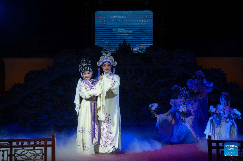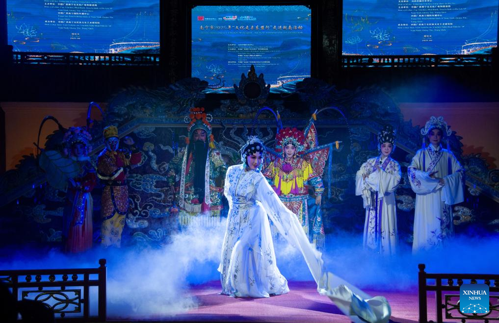 A traditional Chinese opera performance is staged in the central Vietnamese city of Hue on June 29, 2025. A troupe from China's Guangxi Zhuang Autonomous Region staged a traditional Chinese opera performance in the central Vietnamese city of Hue on Sunday.