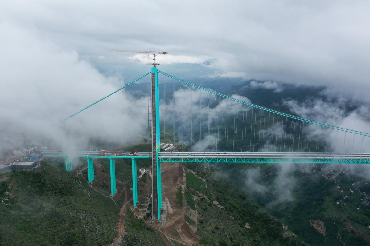The tallest bridge in the world began pre-opening load tests in Guizhou province on Thursday, with maximum test weights exceeding 3,300 tons. [Photo by Liu Qing/For chinadaily.com.cn]