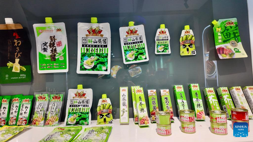 Wasabi products are seen at a wasabi factory in Weixin County, southwest China's Yunnan Province, Oct. 23, 2025. (Xinhua/Wang Xiansi)