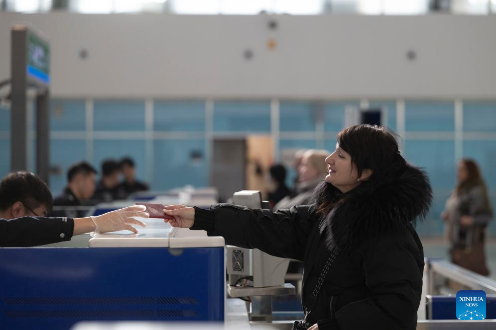 An inbound passenger goes through border crossing procedures at a joint inspection hall of the Suifenhe highway port in Suifenhe, northeast China's Heilongjiang Province, on Jan. 8, 2026. (Xinhua/Zhang Tao)