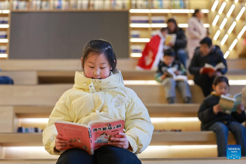 Children read books at a library in Hengyang, central China's Hunan Province, on Feb. 7, 2026. Various extracurricular activities are available for students across China during the winter vacation. (Photo by Cao Zhengping/Xinhua)