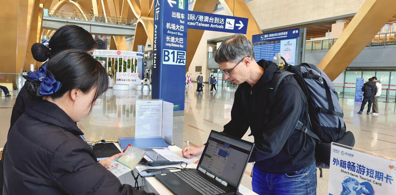 A traveler applies for a seven-day SIM card for foreign visitors. Photo by Zhang Wei.