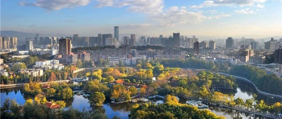 In autumn, the trees around Green Lake glow in brilliant hues, harmonizing with distant skyscrapers to showcase Kunming's unique charm as a city where urban life and natural scenery blend seamlessly. Photo provided