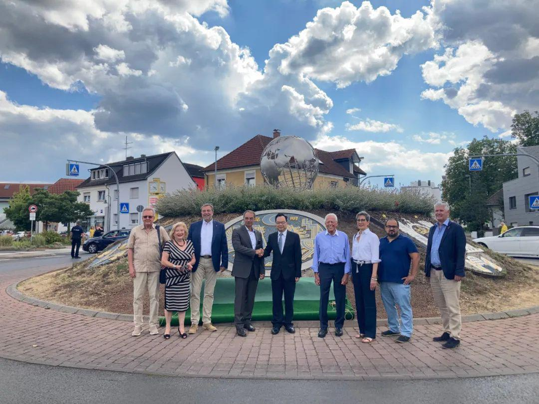 On July 26, 2022, coinciding with the 50th anniversary of diplomatic relations between China and Germany, a special "gift” was unveiled in Dietzenbach—the installation of Kunming's historic cultural emblem, the Golden Horse and Jade Rooster. More than 30 guests attended the unveiling ceremony, including Sun Congbin, Chinese Consul General in Frankfurt, and Mayor Lange of Dietzenbach. In his remarks, Mayor Lange pledged to further deepen and solidify the sister-city partnership.