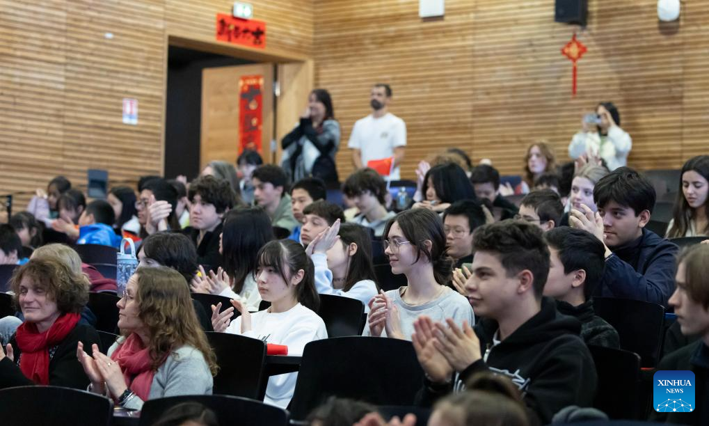 Students of the Provence-Alpes-Cote d'Azur International School perform during a Spring Festival activity in Manosque, France, Feb. 5, 2026. Chinese President Xi Jinping recently replied to a letter from teachers and students of the Chinese language class at the Provence-Alpes-Cote d'Azur International School in France, extending his best wishes to them as well as all the teachers and students of the school. (Xinhua)