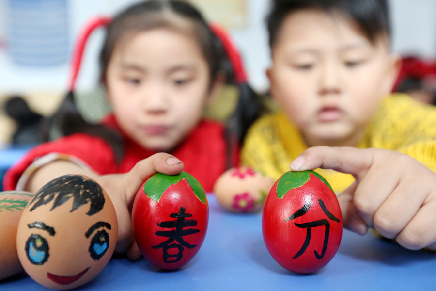 Standing an egg upright is a popular game across the country during the Spring Equinox. It is an old custom that dates back to 4,000 years ago. People practice this tradition to celebrate the coming of spring. It is believed that if someone can make the egg stand, he will have good luck in the future.