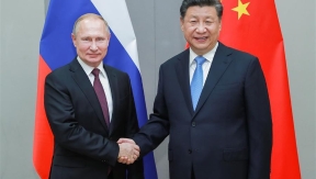 Chinese President Xi Jinping met with Russian President Vladimir Putin here on Wednesday, calling for maintaining a positive and sound momentum of the development of China-Russia relations at a high level.