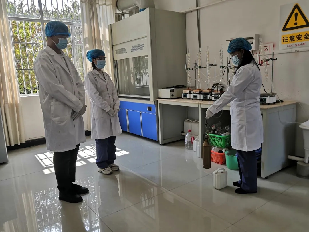 化驗(yàn)中心負(fù)責(zé)人講解檢測(cè)要求和防護(hù)注意事項(xiàng)