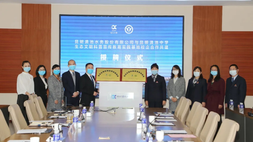 雙方在滇池水務(wù)舉行校企合作共建授牌儀式,企業(yè)授予校方“生態(tài)文明科普宣傳教育基地”,校方授予企業(yè)“生態(tài)文明科普宣傳實(shí)踐基地”。受疫情影響,此次簽約儀式最大限度地減少人員流動(dòng)聚集,雙方代表和學(xué)生家長(zhǎng)代表參加活動(dòng),昆明市科技局、西山區(qū)教體局、水務(wù)局、科工信局和科協(xié)領(lǐng)導(dǎo)應(yīng)邀出席活動(dòng)。