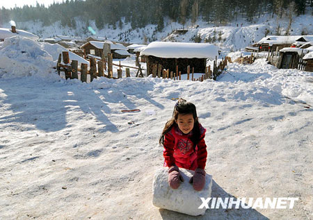 1月31日,孩子在雪鄉(xiāng)玩雪。新華社記者高增雙攝