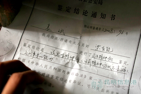 公安局出具的司法鑒定結(jié)論通知書 記者張玉杰/攝