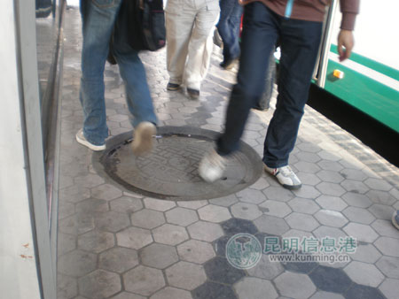 昆明信息港訊 近日,網(wǎng)友“落落繁星”在彩龍論壇發(fā)帖稱:小花園公交站臺上有個(gè)窨井堪稱“陷阱”,忙于趕車的乘客頻頻在這里“中招”,很多人都在這里被絆倒或者扭傷了腳,希望有關(guān)部門來“管一管”。記者就此采訪了相關(guān)管理部門,得到的答復(fù)均為“誰建設(shè)歸誰管”,至于該站臺到底是哪個(gè)產(chǎn)權(quán)單位建設(shè)的,包括昆明市城管局、公用事業(yè)局及公交總局在內(nèi)的管理部門卻紛紛表示“不清楚”。