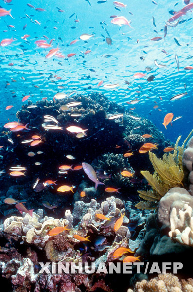 這張于2003年獲得的資料照片顯示了澳大利亞大堡礁的海底景觀。新華社/法新