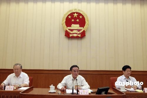 ????6月27日,十一屆全國人大常委會第九次會議在北京人民大會堂閉幕,全國人大常委會委員長吳邦國主持并講話。會議審議通過了《統(tǒng)計法(修訂案)》、《農(nóng)村土地承包經(jīng)營糾紛調(diào)解仲裁法》兩部法律,會議表決通過《全國人民代表大會常務(wù)委員會關(guān)于廢止部分法律的決定》。中新社發(fā)盛佳鵬/攝