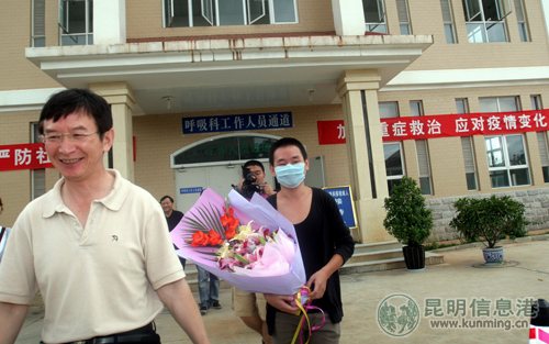 上午10點,省傳染病??漆t(yī)院呼吸科隔離病區(qū)的大門打開,醫(yī)院的相關(guān)專家參加了歡送儀式。該院院長樊移山表示,這是該院接收并治愈的第二例甲流患者,也是云南省第三例治愈出院的甲流患者。