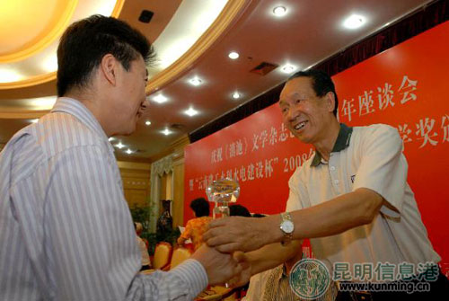 在27日舉行的慶?!兜岢亍肺膶W(xué)雜志創(chuàng)刊30周年座談會(huì)暨“云南建工水利水電建設(shè)杯”2008年度滇池文學(xué)獎(jiǎng)?lì)C獎(jiǎng)典禮中,王棵、武歆、陳鵬、陳慧和徒舉袖衣5位作家分別獲第六屆“滇池文學(xué)獎(jiǎng)”。其中,從事多年新聞工作的新華社記者陳鵬,也以青年作家的身份成為昆明和云南文壇的新生力量之一。