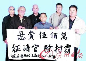 ????但多年的上告均未有具體處理結(jié)果,他們稱希望“征清官 除村霸”,誰(shuí)能幫助他們討回5000萬(wàn)集體資產(chǎn),愿意提供500萬(wàn)懸賞,還稱是得到了1020名村民簽名允許。對(duì)此,東南村委工作人員回應(yīng)稱“這是誣告”。