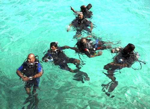 中新網(wǎng)10月8日電 據(jù)香港《大公報》8日報道,馬爾代夫政府計劃舉行一次前所未有的海底內(nèi)閣會議,旨在突出全球暖化造成海水上漲帶來的威脅。為此,內(nèi)閣部長們正在學習使用呼吸器和水下手勢語。