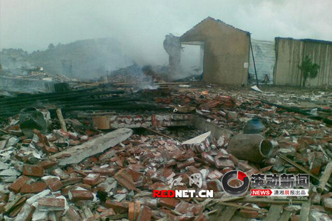 湖南臨湘長津鞭炮廠爆炸現(xiàn)場。手機拍攝/瀟湘晨報滾動新聞記者 秦樓