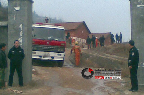 1月26日上午,湖南臨湘長津鞭炮廠大門口。手機拍攝/瀟湘晨報滾動新聞記者 秦樓