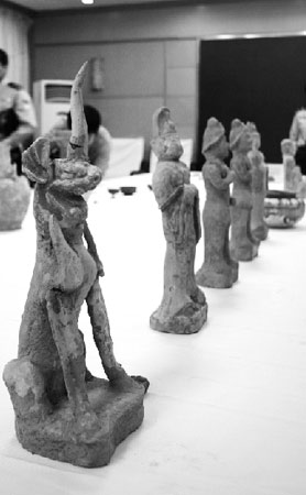 ????“價值百萬的彩色女陶俑,他們只賣了3塊錢。”這些人供述,他們不識貨,拿到古玩城時,買家說不值錢,還不如扔了,“我們也覺得一個小小的陶器不值錢,就打算白送給他,最后他給我3塊錢”。