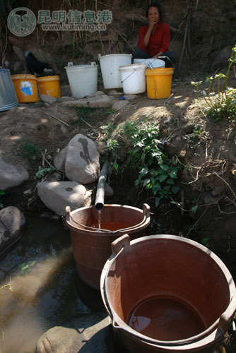 元謀挨崗村,村民幾十戶(hù)人的生活用水只能靠村邊泉水維續(xù) 記者王磊/攝