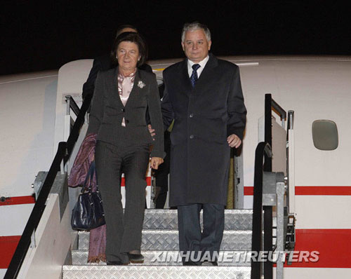 ????資料照片顯示的是,2008年11月5日,波蘭總統(tǒng)卡欽斯基及夫人乘坐圖-154飛機(jī)抵達(dá)斯洛文尼亞的盧布爾雅那。新華社/路透