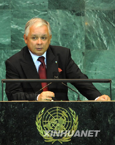 ????圖為2009年9月23日,在美國紐約聯(lián)合國總部,波蘭總統(tǒng)卡欽斯基在聯(lián)合國大會一般性辯論中發(fā)言。 新華社記者申宏攝