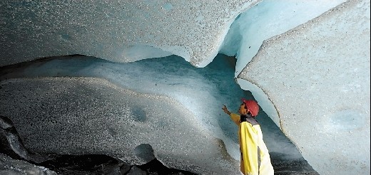 ????2009年8月22日,中科院麗江玉龍雪山冰川與環(huán)境觀測站工作人員在海拔4800多米的地點觀測考察冰洞變化。