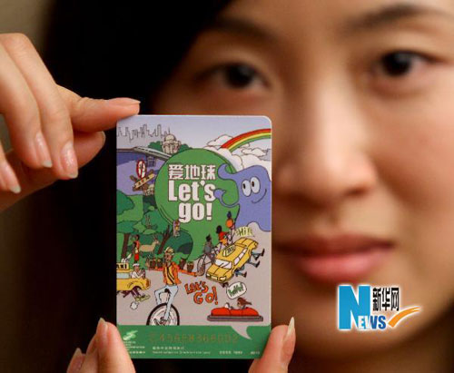 當日,全球首款低碳交通卡——“世博綠色出行低碳交通卡”首發(fā)儀式在上海舉行。該活動由上海世博局、中國民促會綠色出行基金等組織聯(lián)合舉辦,是“綠色出行看世博”系列活動的一項舉措。除具備普通交通卡的所有功能之外,該卡的最大亮點在于每張卡內(nèi)含有一噸碳指標。購買一張含碳交通卡,持卡人將通過“綠色出行”基金為低碳世博貢獻一噸碳指標,也就是為上海世博會減少了一噸碳排放。新華社記者 陳建力/攝