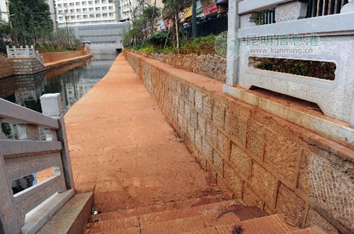 ????金碧橋與柿花橋之間玉帶河河岸兩邊堤壩上,全是紅色的泥水印,據(jù)周邊鋪面店主介紹,每天早上綠化工人來這里澆灌植物時(shí),由于灌溉車水壓大,大量泥水流入玉帶河,泥水風(fēng)干后,河道兩邊沾滿泥土。住在昆華醫(yī)院家屬區(qū)的王大爺說:“我每天都會(huì)到河邊晨練,看著大量泥水流入河內(nèi)我很擔(dān)心,這些泥水不僅污染河道水質(zhì),而且泥水經(jīng)過沉淀,時(shí)間久了會(huì)堵塞河道,汛期一到,也會(huì)對(duì)河道排水造成很大影響?!蹦嗷也粌H影響河道,同時(shí)也對(duì)周邊商戶帶來很大不便。一家包子店老板說:“泥水風(fēng)干后,風(fēng)便把泥灰吹得到處都是,泥灰對(duì)店里的環(huán)境影響很大?!?/p>