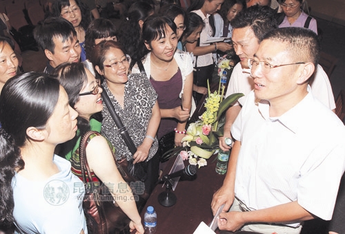 中考志愿填報(bào)咨詢會(huì)結(jié)束后,家長(zhǎng)們圍著昆一中校長(zhǎng)咨詢疑難問題。記者謝慧/攝