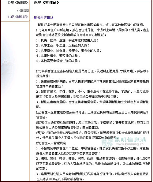 網(wǎng)站截圖 如何辦理《暫住證》