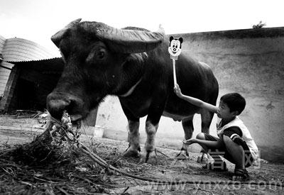 ????慢慢的,王孝蓮發(fā)現(xiàn)這頭牛與一般的牛有不同之處。它喜歡用牛角撐著地面,像人一般側臥睡覺,喜歡吃水果,喜歡女人和小孩,當然還喜歡母牛。一次在田野里,遠遠看見一頭牛在低頭吃草,好斗成性的“擎天柱”揚起蹄子就往前飛奔,準備和對方一決高低,沒想灰塵仆仆地沖到對方面前,這小子突然來了個急剎車,因為它發(fā)現(xiàn)對方竟是一頭年輕漂亮的小母牛,看著不知所措的“女士”,它的眼神慢慢變得柔和,然后,非常“紳士”地掉轉身走開了。原來,它只與公牛決斗。