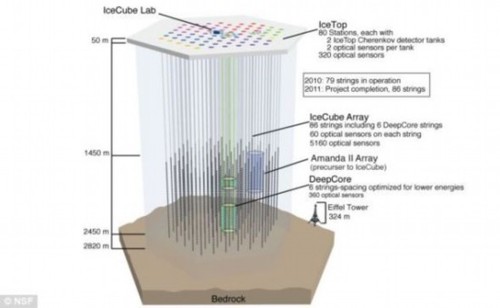 ????天文臺(tái)的大?。ㄟ呴L一公里的立方體冰塊)非常重要,因?yàn)檫@可增加中微子與原子相撞的機(jī)會(huì),大大提高觀測成功率。另外,南極冰是用來觀測這種罕見事件的完美選擇。全球大部分冰里都含有氣泡或其他雜質(zhì),這會(huì)使觀察結(jié)果產(chǎn)生誤差。而南極冰基本上完全是由水冰組成的巨大冰川,這意味著它包含更多原子,因此會(huì)大大增加中微子撞擊的機(jī)會(huì)。圓形探測器被串成串,放入用熱水鉆開鑿出來的冰洞里,鉆每個(gè)冰洞需要融冰多達(dá)20萬加侖。每根電纜線上有60個(gè)傳感器,86串這樣的傳感器串組成冰立方的主探測器。(孝文)