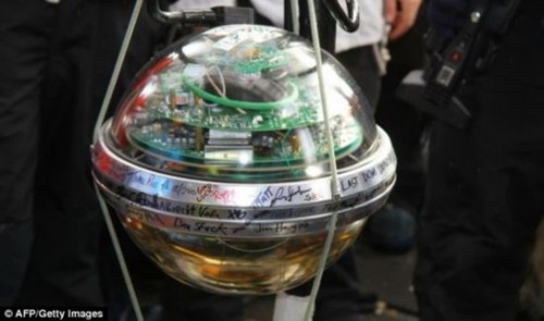 人們準(zhǔn)備安裝最后的電子光學(xué)組件,它上面有全隊(duì)所有成員的簽名。