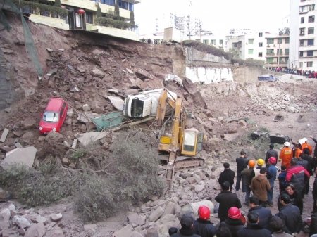 ????據(jù)南江縣委宣傳部副部長孫智介紹,水務局門口約有20多米長、4米寬的公路發(fā)生垮塌,由于不屬主干道,對城區(qū)交通未造成太大影響。接到報警后,縣上馬上成立工作組,開展現(xiàn)場保護、隱患排查和搜救工作,四輛已經(jīng)變形的車很快吊離現(xiàn)場。公路下方的兩臺挖掘機未被掩埋,經(jīng)過反復清點,其中一臺挖掘機司機去向不明,是否被埋還不能確定。截至記者發(fā)稿時,搜救失蹤挖掘機司機的工作還在緊張進行。(謝穎)