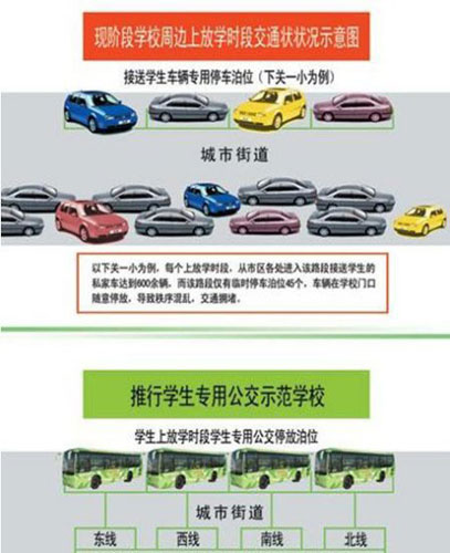 ????一些家長告訴記者,據(jù)悉,當(dāng)時提學(xué)生公交專線,是借鑒了白領(lǐng)“拼車”的智慧。有一些大城市的“拼車”做法是:比如3個同樣擁有私家車的車主,他們的工作地點比較接近,那么3人就會約好這個月只坐一個人的車去上班,其余兩人給車主一些補貼,這樣,用一輛車也能達(dá)到開3輛車去上班的效果,既環(huán)保又可以減少交通壓力。