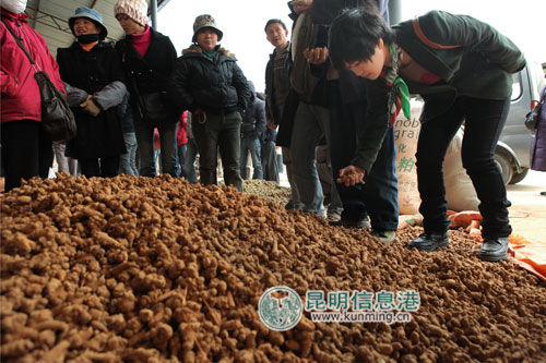 ????1月9日,在文山州三七國際交易中心后面的臨時性三七交易市場內(nèi),還不到8點,市場內(nèi)就已人聲沸騰。三七流通商黃先生像往常一樣穿梭在市場的每個角落,問問這家三七的價格,再看看那家的三七,但一直沒出手。“三七如股票,價格還處在高位,還不宜買入。”黃先生說,現(xiàn)在幾乎沒有三七流通商敢存貨,誰知道今后價格會上演哪出戲呢?