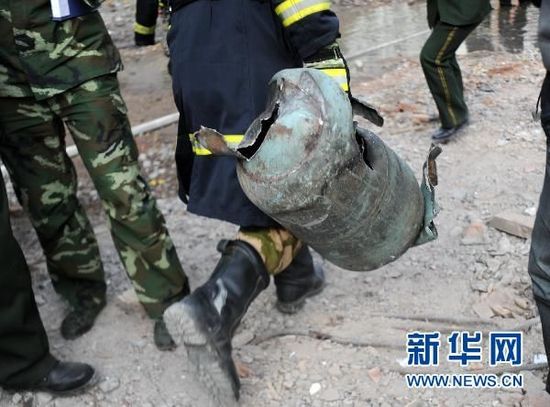 ????4月19日,一名消防隊員撿回發(fā)生爆炸的氣體瓶。當日下午16時20分許,蘭州大學第二附屬醫(yī)院一舊建筑拆除工地發(fā)生氣體瓶爆炸,造成2名施工人員當場死亡,7人受傷。 聶建江/攝