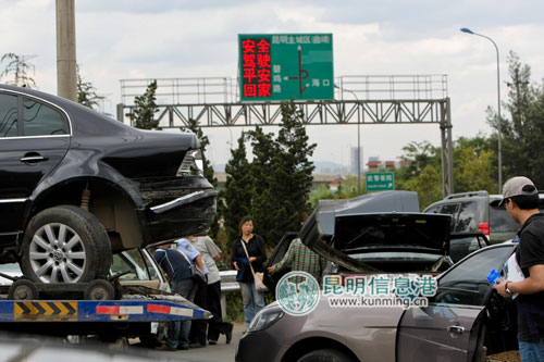 ????昆楚交警大隊(duì)的莊警官說,這些事故的原因都非常簡(jiǎn)單,就是跟車距離不夠。前面的車急剎,后面的就跟著撞了上去。根據(jù)現(xiàn)場(chǎng)肇事順序,如果沒有造成人員受傷的,追尾者承擔(dān)前車和自己車頭部的損失,后面的追尾者以此類推,基本都使用了快處快賠方式解決。這些車禍中,除一輛微型車有一名小孩的頭部撞到擋風(fēng)玻璃外,基本沒有明顯的外傷。其余的車輛上有幾名乘客說受傷了,都要求到醫(yī)院進(jìn)行檢查。由于交警及時(shí)處理,沒造成大面積的交通擁堵。