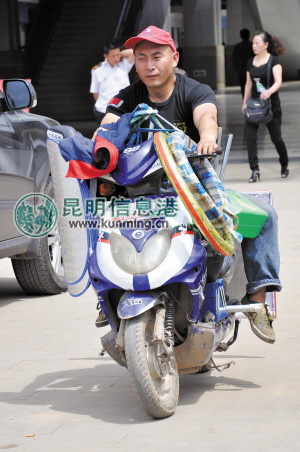 ????最近,家住新螺螄灣附近的市民發(fā)現(xiàn),經(jīng)常能看到一個(gè)騎著電動(dòng)車,車上還掛滿了各種修車工具和配件的男子,游走在大街小巷幫人修電動(dòng)車。男子稱自己的這套裝備是電動(dòng)車“120急救中心”,認(rèn)識(shí)他的市民都親切地稱呼他“老羅”。 “老羅”真名叫羅祥,大理祥云人,上個(gè)月剛滿31歲?!皠e看我的這套裝備不起眼,用途多著呢?!崩狭_說,7年前他從北京退伍轉(zhuǎn)業(yè)回到云南后,曾經(jīng)在一家經(jīng)營電動(dòng)車的公司搞銷售工作,“與其跟別人打工,不如自己當(dāng)老板?!眱赡昵袄狭_決定辭去工作,在新螺螄灣附近租了一間80多平米的房子,靠著多年在電動(dòng)車行業(yè)內(nèi)摸爬滾打的經(jīng)驗(yàn),開了一間電動(dòng)車修理鋪。不過,由于地理位置的局限性,老羅的生意冷冷清清,“我感覺自己有一身武藝沒地方使啊!”仔細(xì)思考了一段時(shí)間后,“老羅”終于想出了一個(gè)好點(diǎn)子——讓修車鋪“動(dòng)起來”。