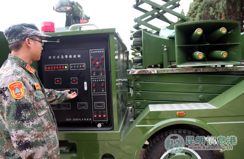 ??? 9月6日,昆明市人防辦舉行配發(fā)縣(市)區(qū)移動(dòng)升降防空警報(bào)交接儀式,向14個(gè)縣(市)區(qū)統(tǒng)一配發(fā)了JDS移動(dòng)升降大功率警報(bào)系統(tǒng)。此次大規(guī)模、一次性向各縣(市)區(qū)配發(fā)警報(bào)系統(tǒng)在國(guó)家防空城市中尚屬首次,此批先進(jìn)警報(bào)系統(tǒng)也將在“九·一八”當(dāng)天鳴響。