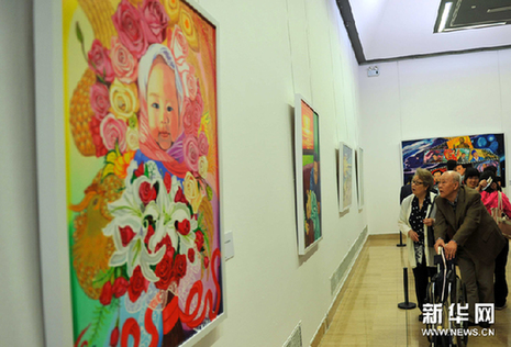 ????9月12日,參觀者在欣賞展出的繪畫作品。新華網(wǎng)圖片 公磊 攝