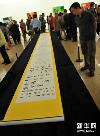 9月12日,參觀者在欣賞書法作品。 新華網(wǎng)圖片 公磊 攝