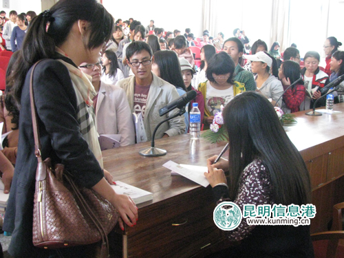 ????昆明信息港訊 記者孫紅亮 昆明信息港彩龍論壇非常文字版主雅蘭今日(6日)在昆明冶金高等??茖W校舉行了《有點蘭》的新書發(fā)布會,現(xiàn)場有近百人與雅蘭一起分享了寫作10年的心得與感悟,并領(lǐng)略了雅蘭的多面魅力。