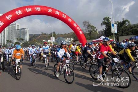 ????“保護(hù)撫仙湖 云南記者在行動(dòng)”,在新中國(guó)第12個(gè)記者節(jié)來(lái)臨之際,11月5日上午,2011年聶耳杯自行車環(huán)撫仙湖邀請(qǐng)賽在澄江縣開(kāi)賽。來(lái)自中央駐云南新聞單位、省內(nèi)20余家新聞單位組成的23支代表隊(duì)300余名運(yùn)動(dòng)員、教練員以及裁判員參加了此次賽事。