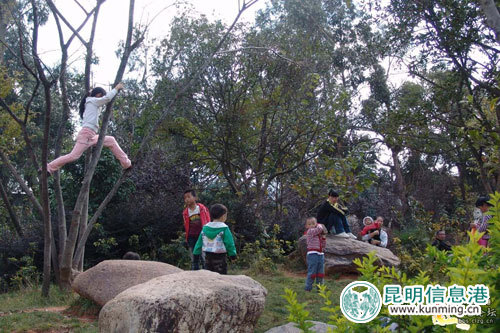 ????在網(wǎng)友“蕭寒”提供的照片中,記者發(fā)現(xiàn),金家河原本清靜的林道已“變身”為“萬能場所”,其中,一部分景觀石似乎成了天然的板凳,供走累、玩累的人隨意休憩,而另一些石頭則化身為“晾菜石”,上面曬滿了做咸菜的茄子片。令人擔(dān)憂的是,一群孩子正在林中爬上爬下,玩得不亦樂乎,全然不顧自身的安全。而在河道邊,甚至還有一位男子當(dāng)眾小便為植物“施肥”……